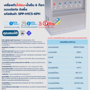 Rich Cool เครื่องทำน้ำร้อน 1 ก๊อก และน้ำเย็น 5 ก๊อก แบบต่อท่อ รหัสสินค้า SPP-H1C5-6PH