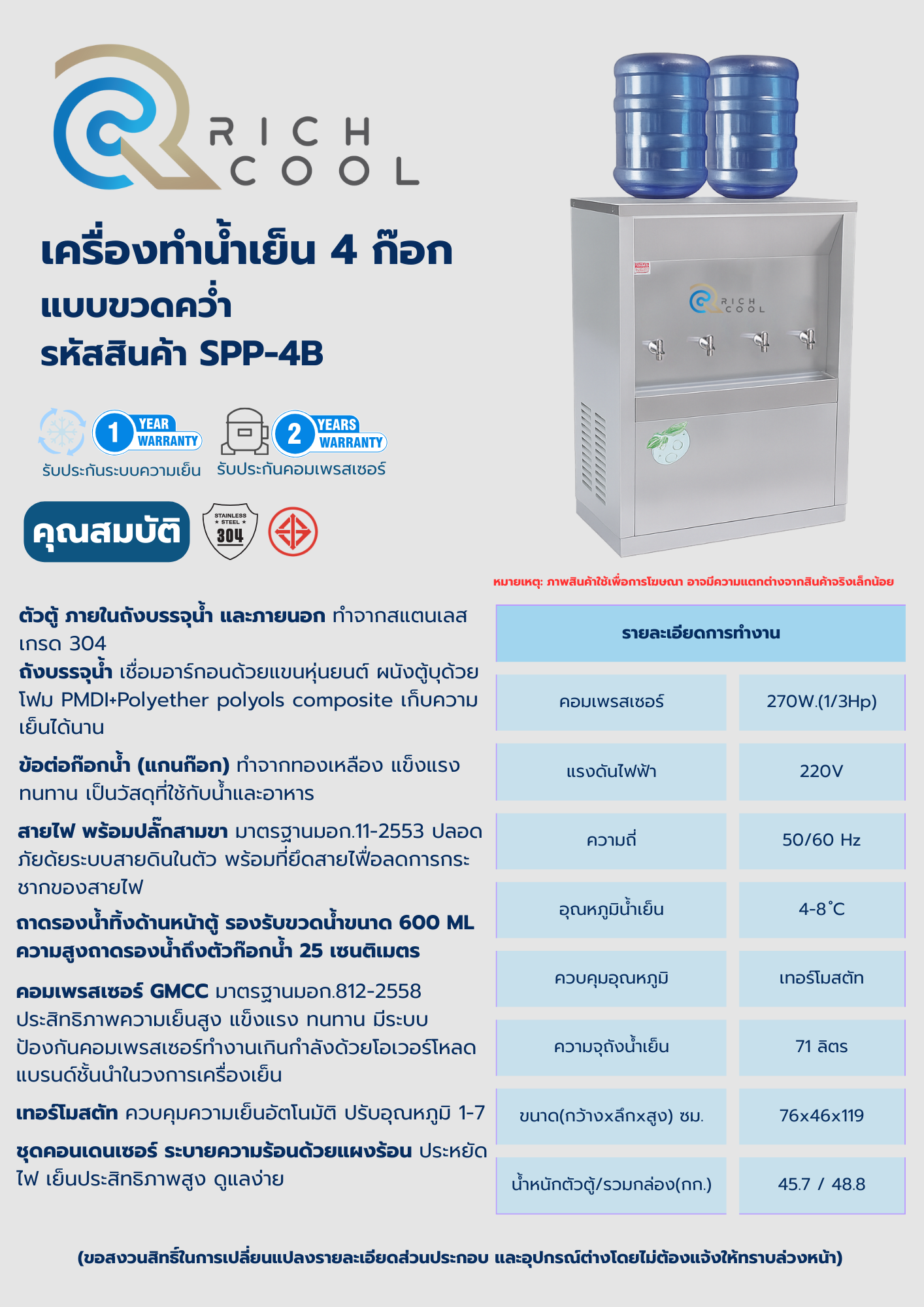 | อุณหภูมิน้ำเย็น | 4 — 8 องศา |
