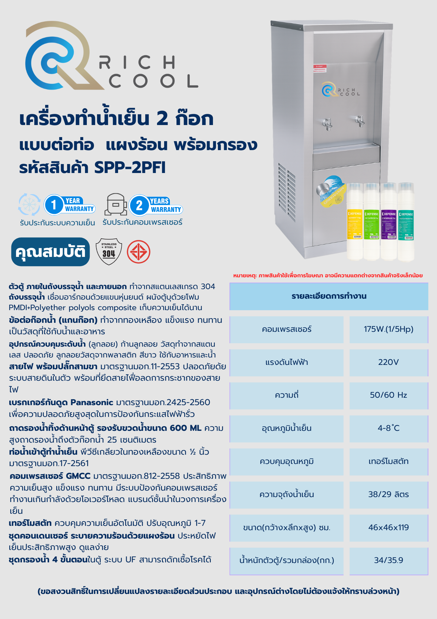 | ระบบกรองน้ำ | 4 ขั้นตอนระบบ UF |
