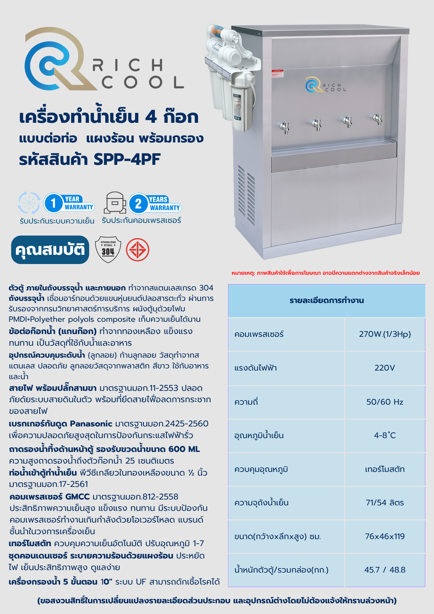 Rich Cool เครื่องทำน้ำเย็น 4 ก๊อก พร้อมเครื่องกรองน้ำ 5 ขั้นตอน รหัสสินค้า SPP-4PF