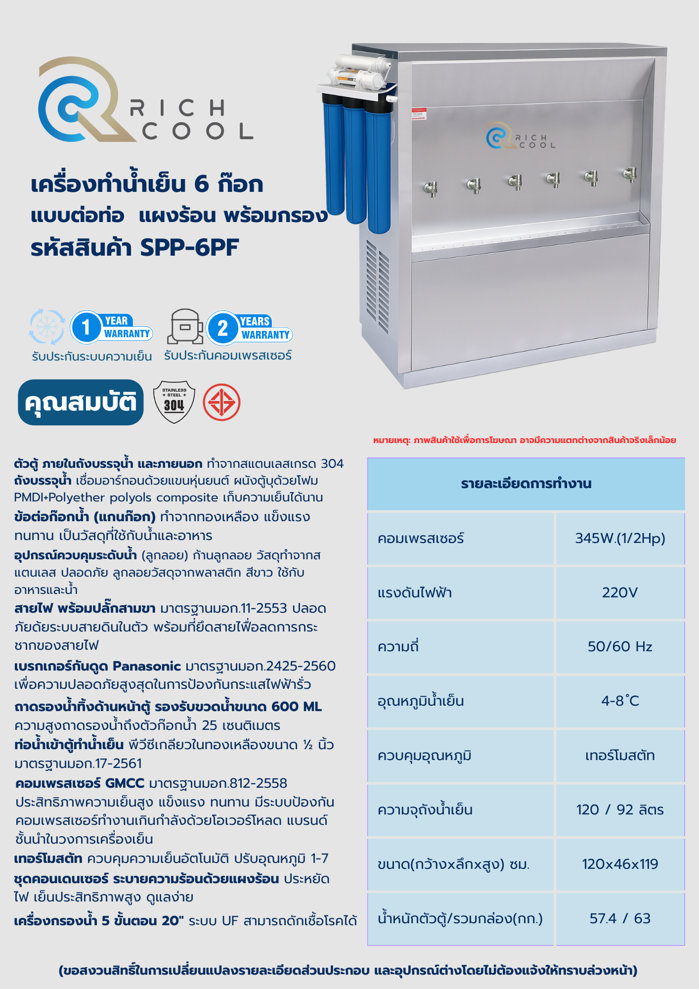 Rich Cool เครื่องทำน้ำเย็น 6 ก๊อก พร้อมเครื่องกรองน้ำ 5 ขั้นตอน รหัสสินค้า SPP-6PF