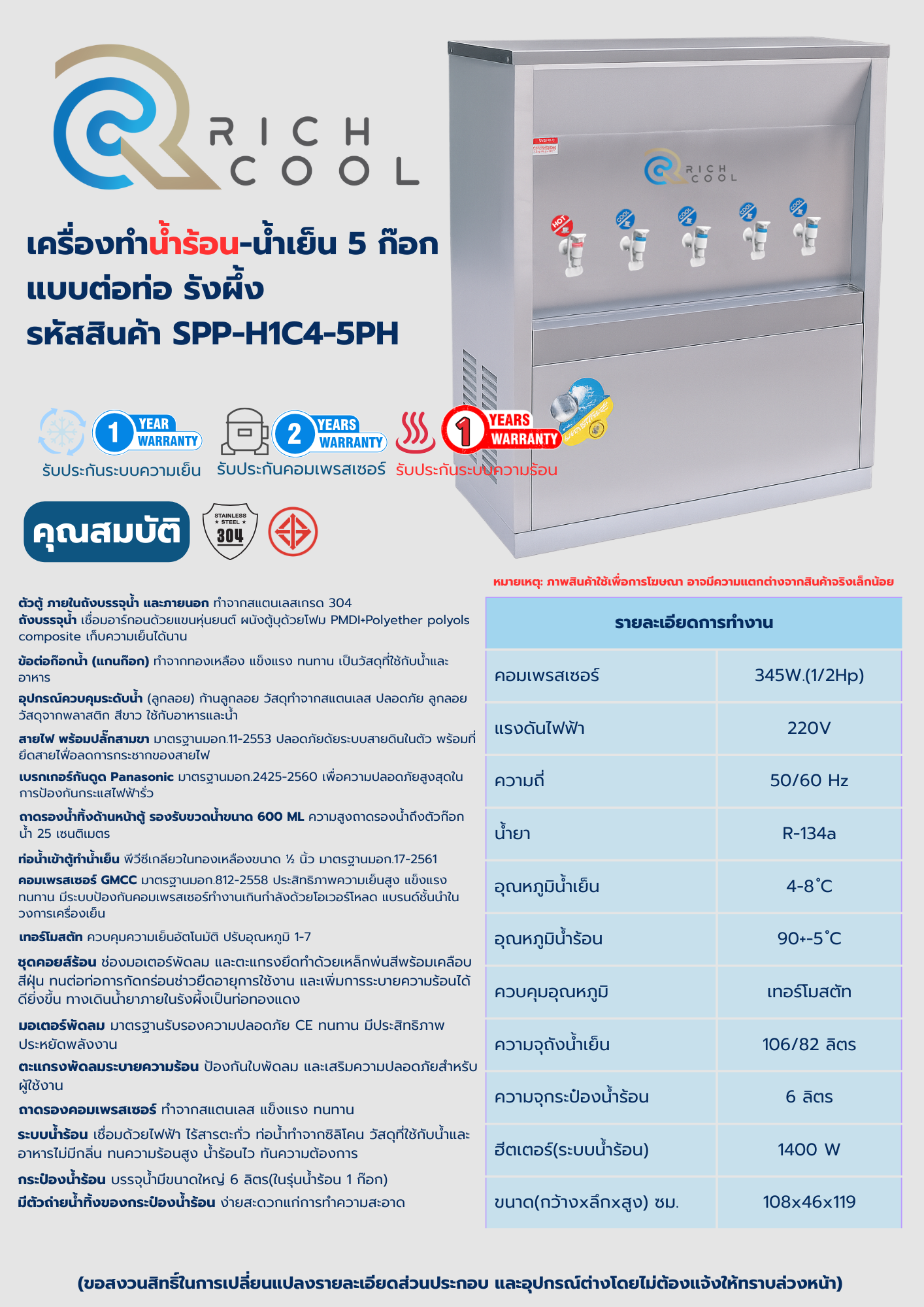 | ฮีตเตอร์(ระบบน้ำร้อน) | 1,400 W |