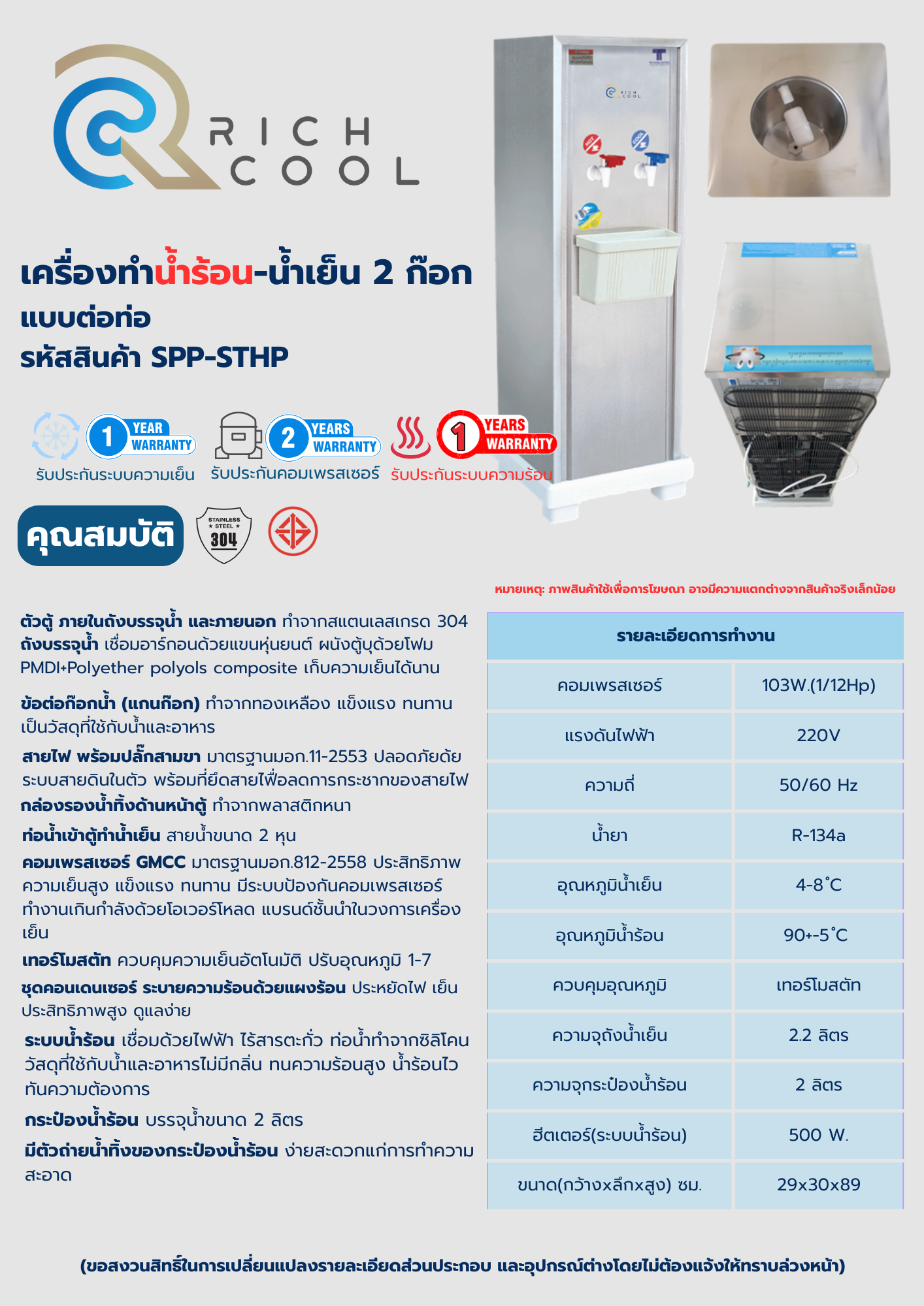 | อุณหภูมิน้ำเย็น | 4-8 องศา |