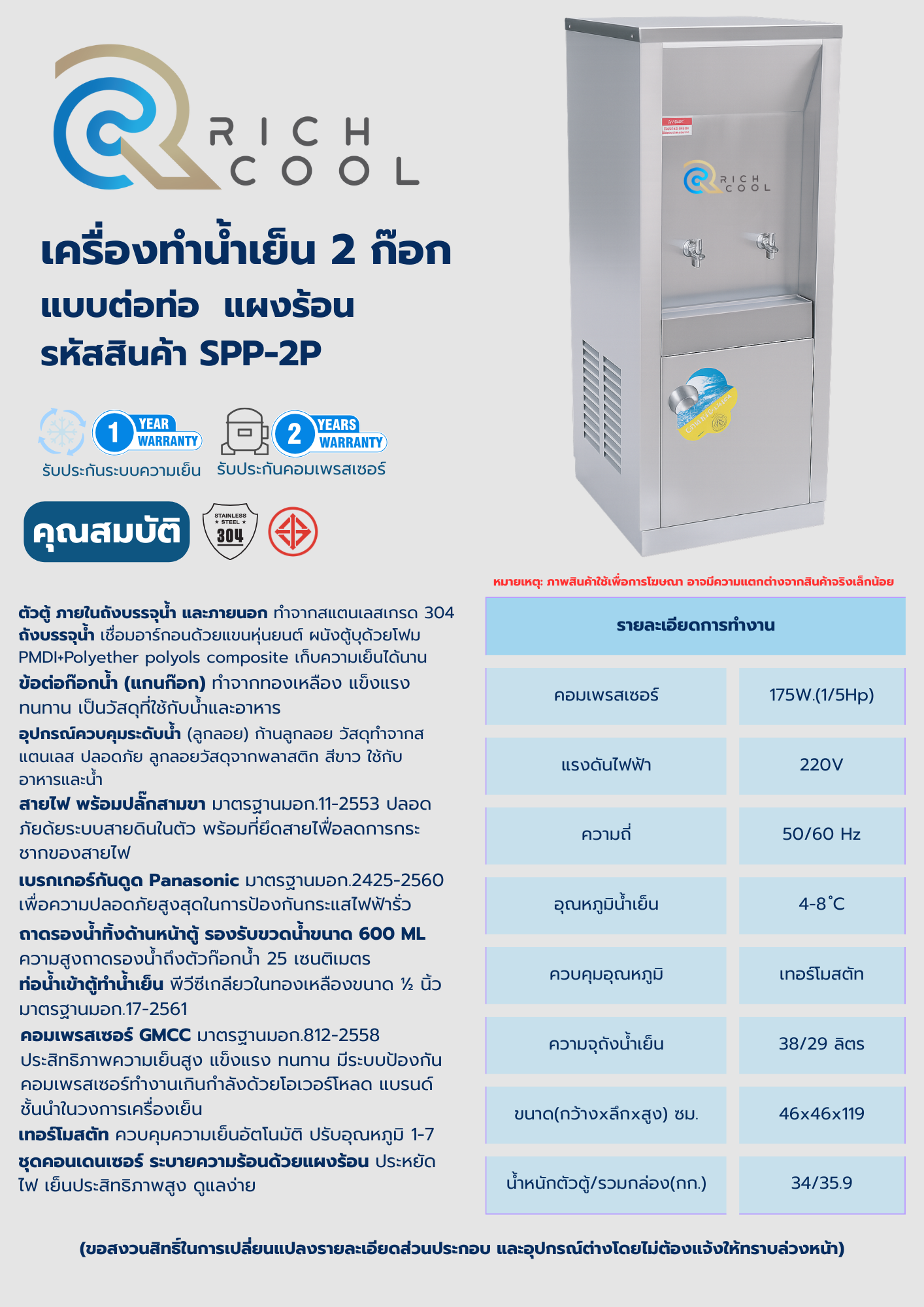 | ความจุถังน้ำเย็น/ปริมาณใช้จริง | 38 / 29 Litre |
